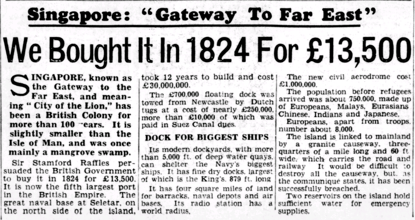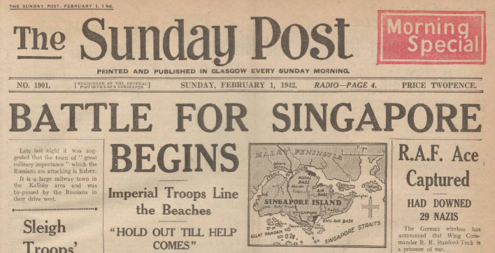 World War II in Singapore began on 8 December 1941, when Japanese planes dropped the first bombs on the island, killing 61 and injuring 133 people. The Japanese Troops than began their invasion from the north in Malaya and eventually reached the shores of Singapore on 8 February 1942.