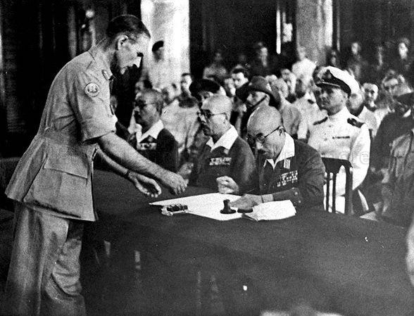 The Japanese surrendered to General Douglas MacArthur on board an American battleship, Missouri, at Tokyo Bay at 9 am on 2 September 1945 – officially ending WWII.1 Two weeks later, on 12 September 1945 at 11.10 am, local time, another Japanese surrender ceremony was held at the Municipal Building of Singapore (now known as City Hall), which was accepted by Lord Louis Mountbatten.2 It officially ended the Japanese Occupation of Southeast Asia.